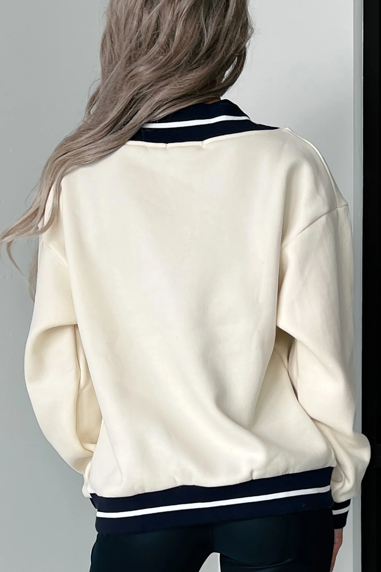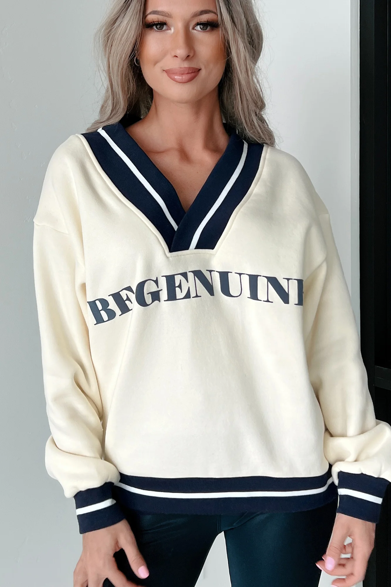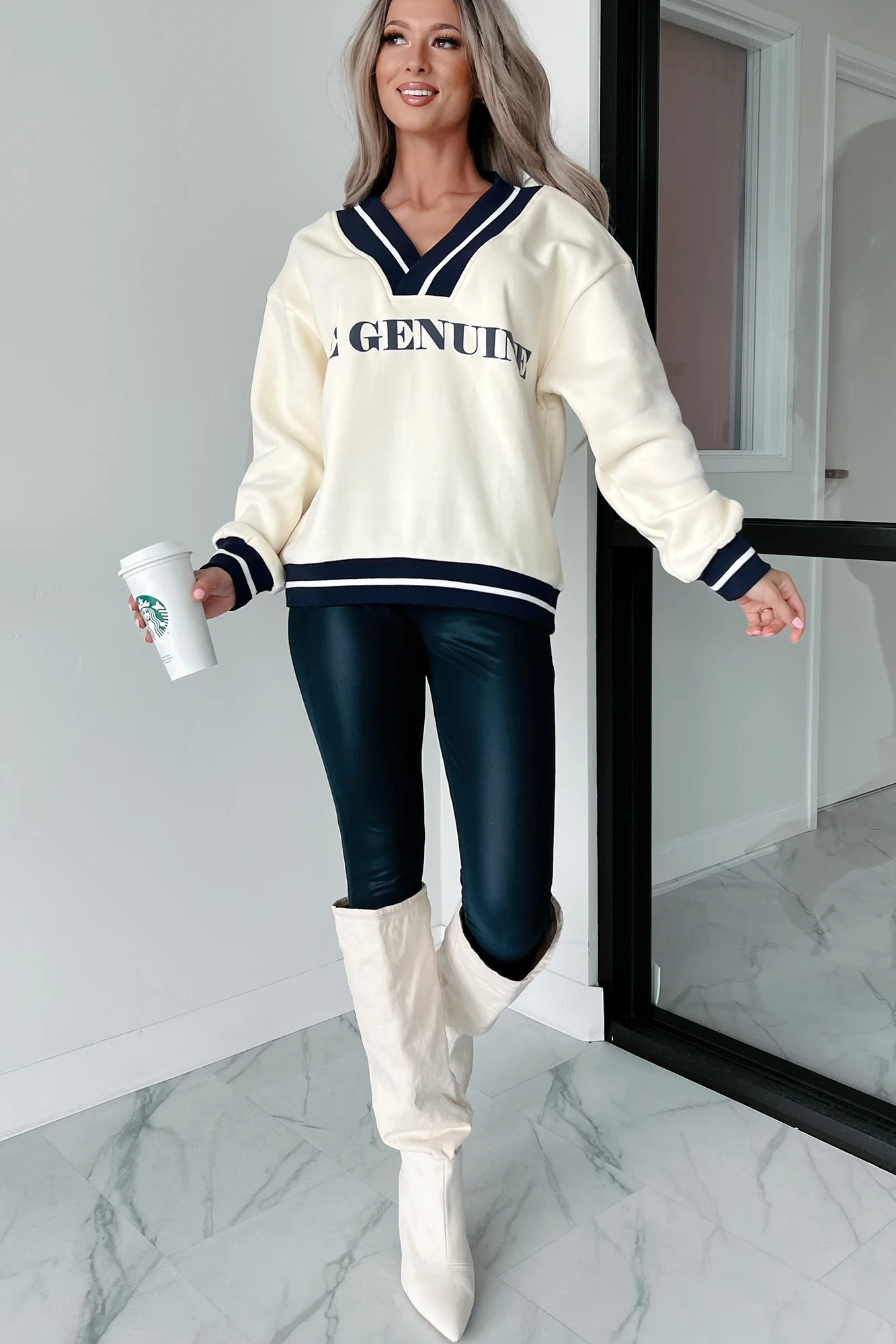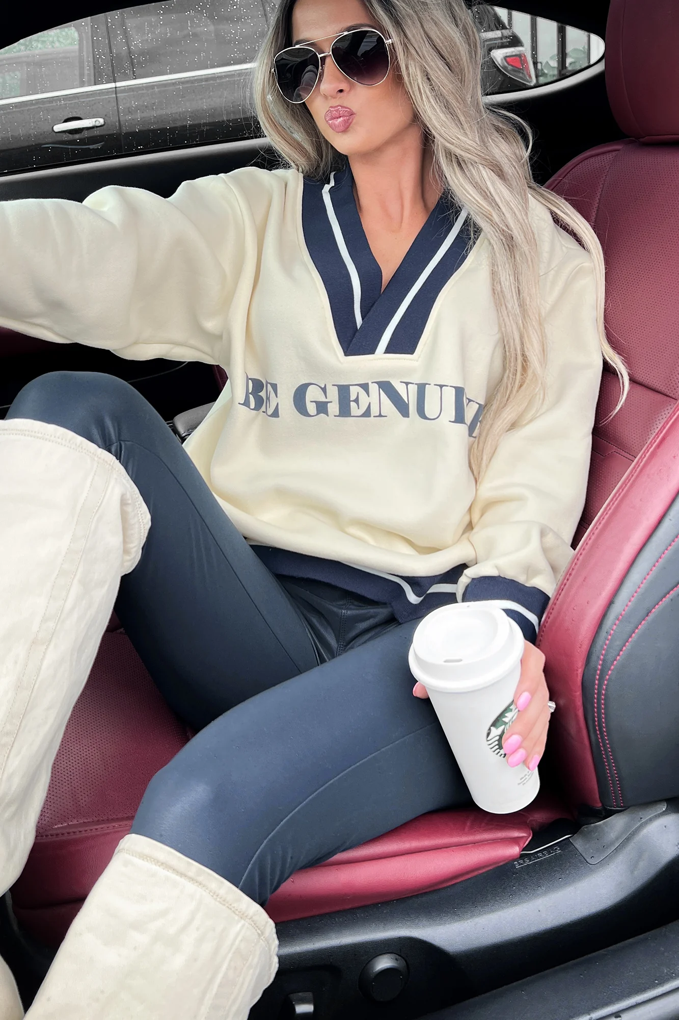 "Be Genuine" Varsity Stripe Graphic Sweater (Cream)