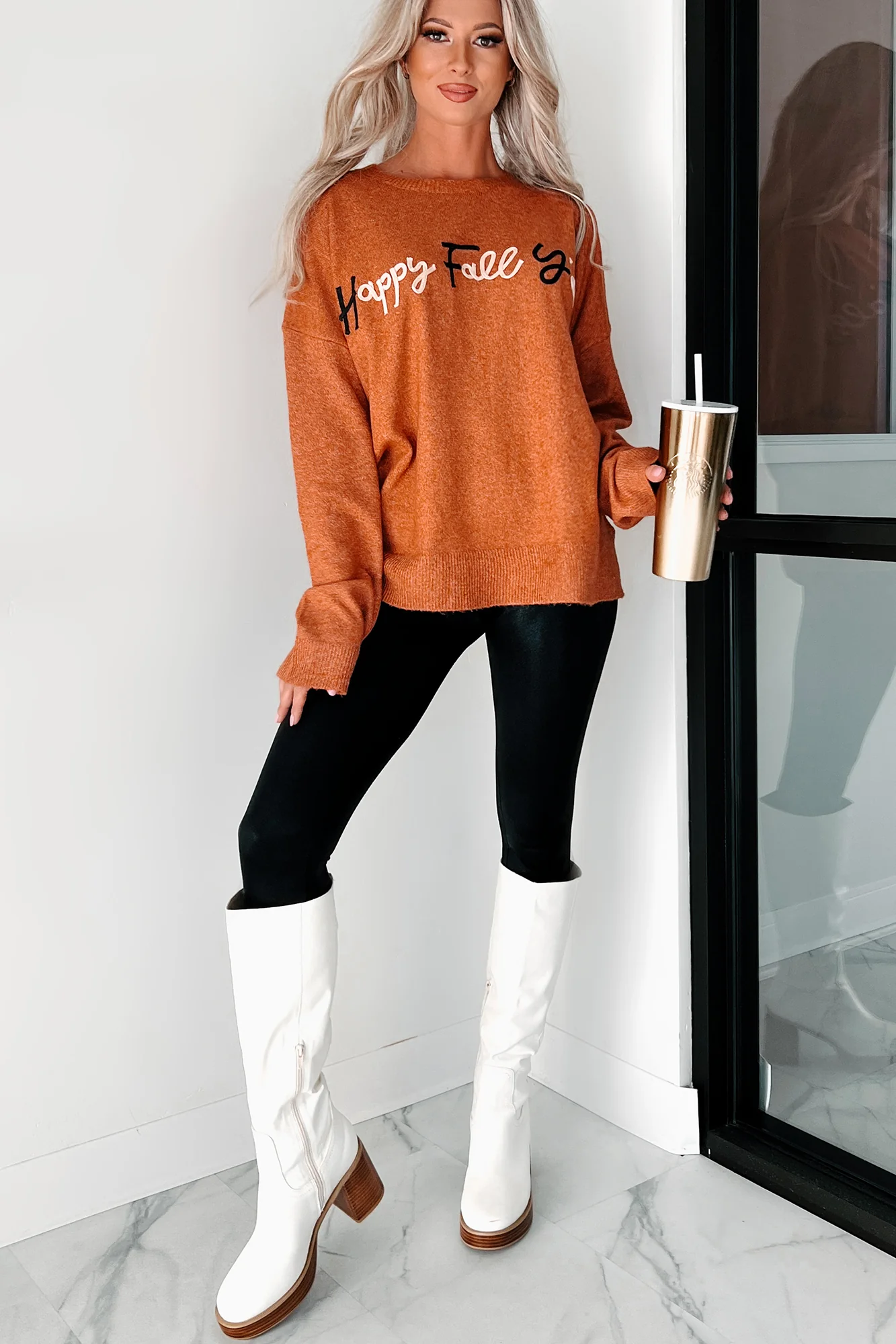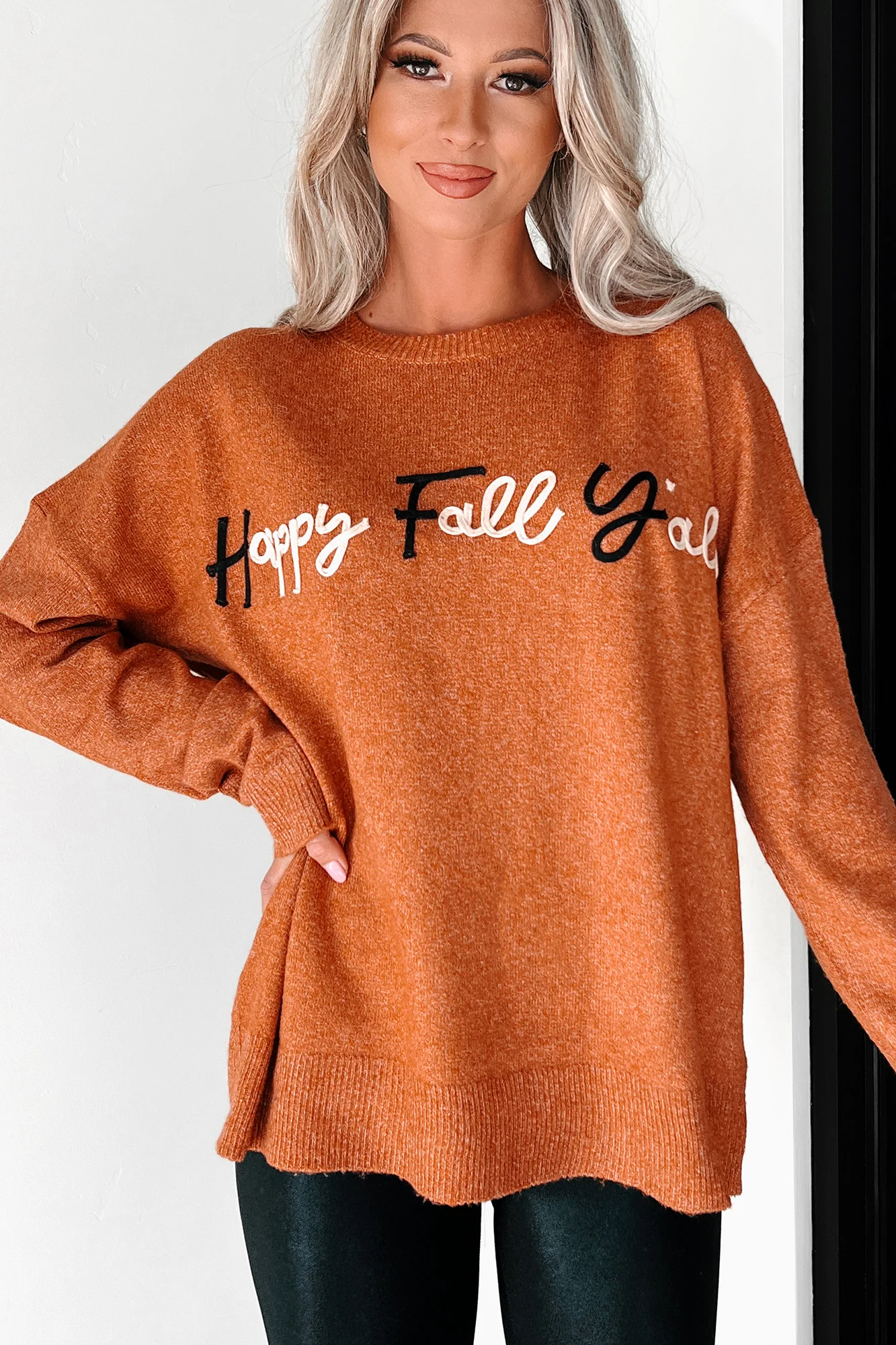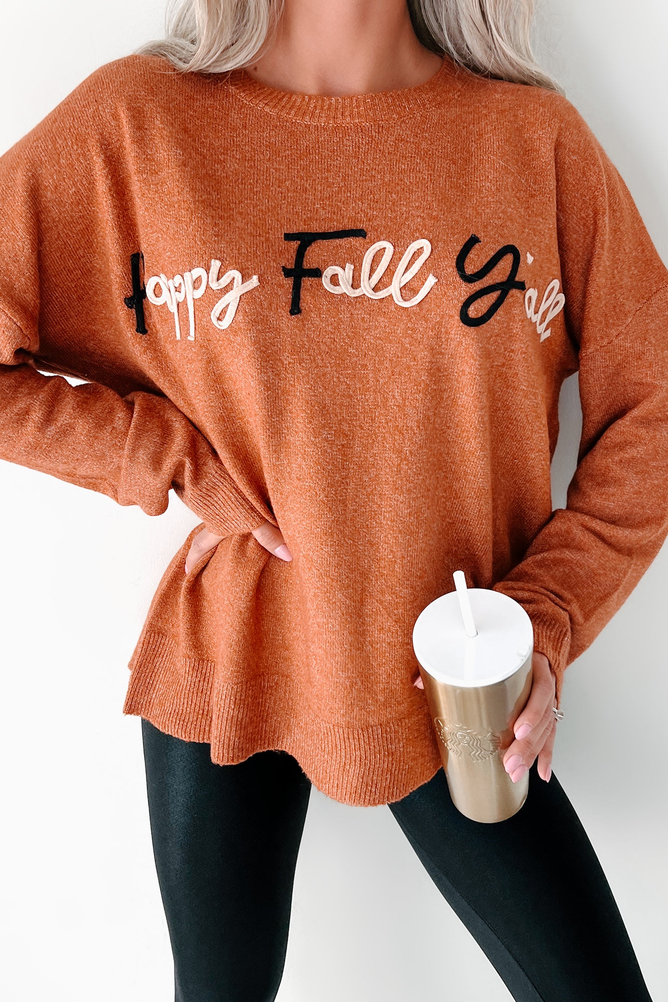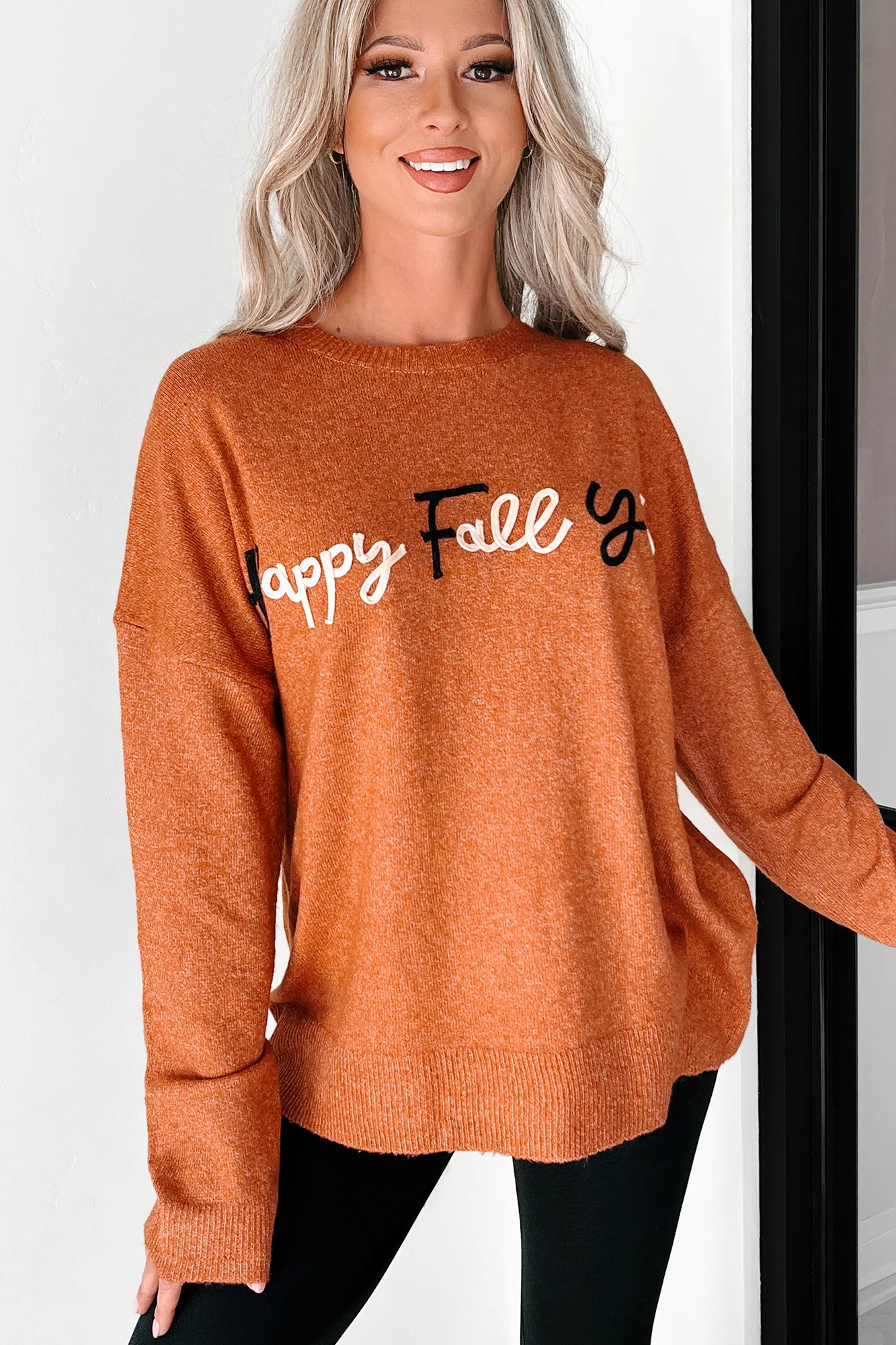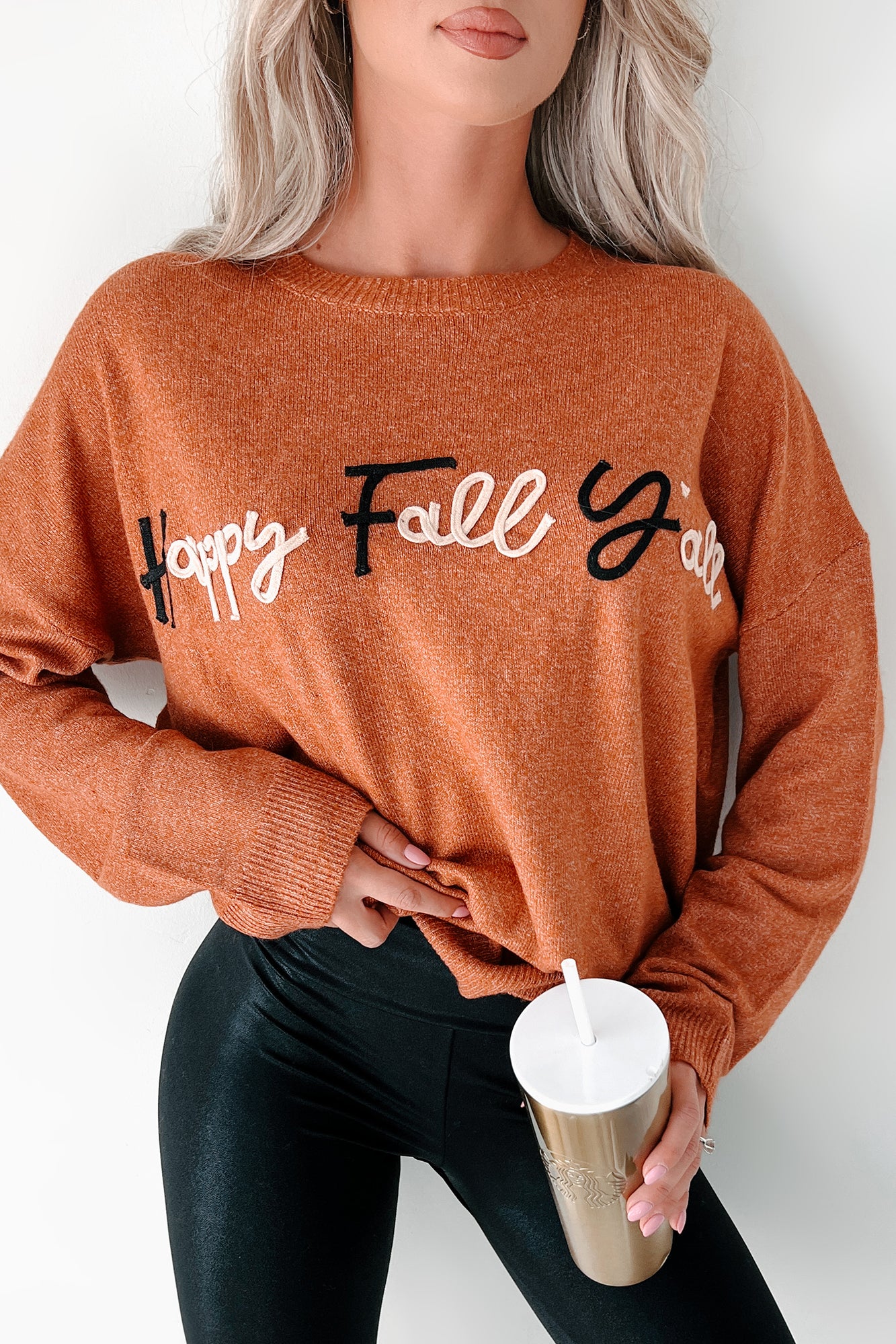 "Happy Fall Y'all" Graphic Sweater (Rust)