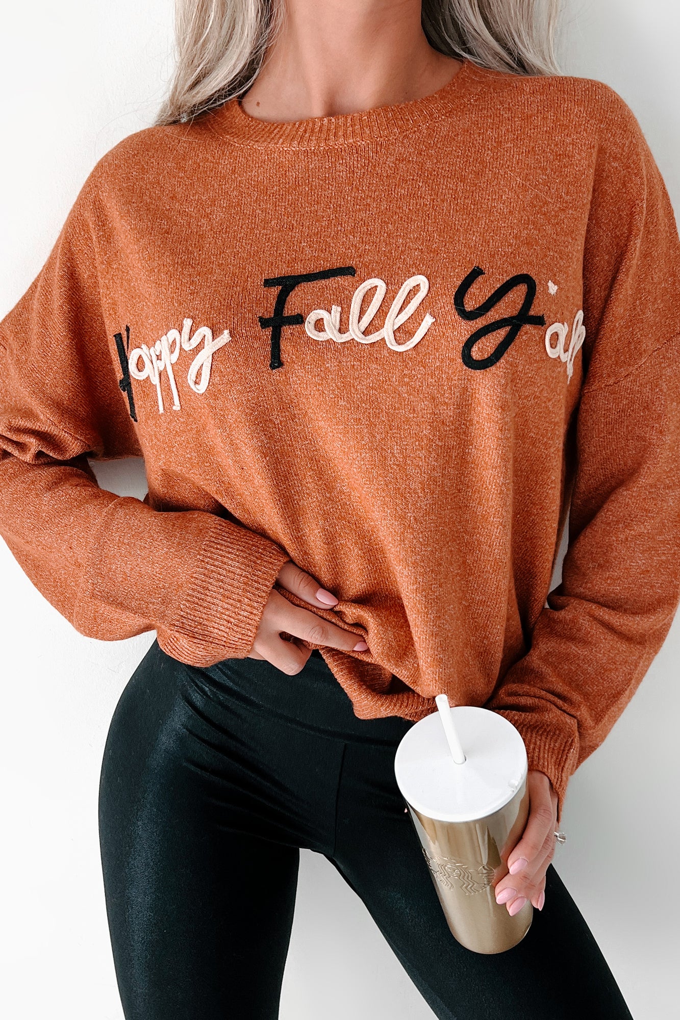 "Happy Fall Y'all" Graphic Sweater (Rust)